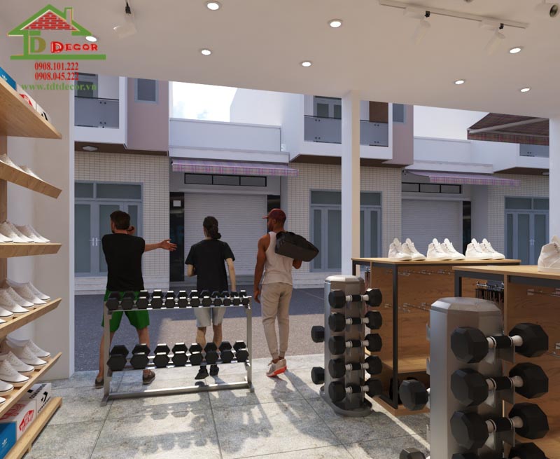Phối cảnh bên trong công trình shop thể thao nam đa năng Mạnh Hùng.