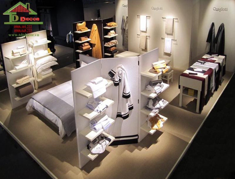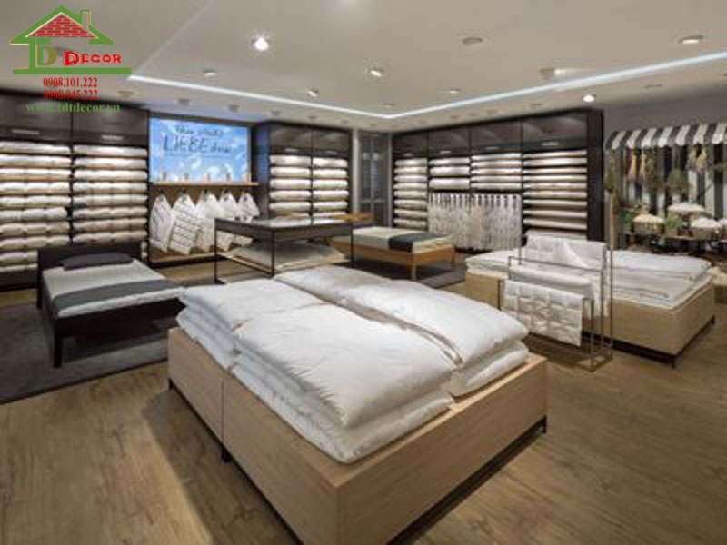Thiết kế tủ kệ trưng bày chăn ga gối đệm sang trọng và cao cấp