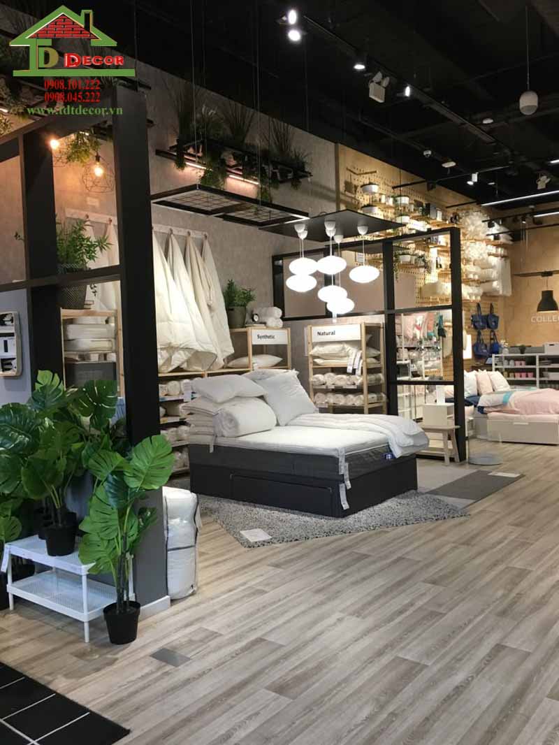 Mẫu thiết kế nội thất cửa hàng chăn ga gối đệm được bố trí nội thất logic tạo nên không gian mở thông thoáng