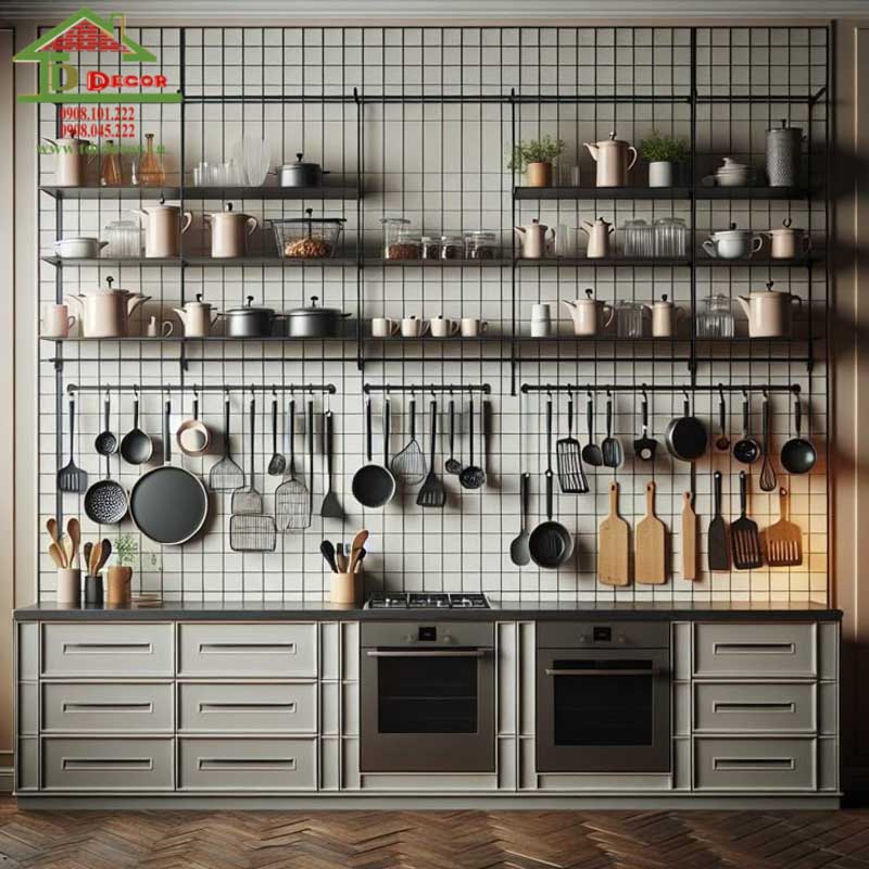 Khu vực bếp gia dụng được thiết kế được chia theo các khu vực, các loại hàng