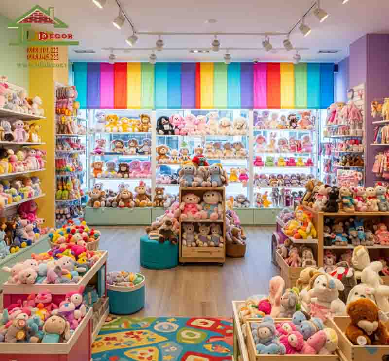 Màu sắc và ánh sáng đóng vai trò vô cùng quan trọng trong việc tạo dựng không gian của cửa hàng gấu bông, ảnh hưởng trực tiếp đến cảm xúc và trải nghiệm của khách hàng. Sự kết hợp hài hòa giữa các gam màu tươi sáng và ánh sáng phù hợp không chỉ thu hút ánh nhìn mà còn tạo ra một bầu không khí ấm áp, thân thiện, khuyến khích khách hàng khám phá và mua sắm. Dưới đây là những yếu tố cần xem xét khi lựa chọn màu sắc và ánh sáng cho cửa hàng gấu bông.