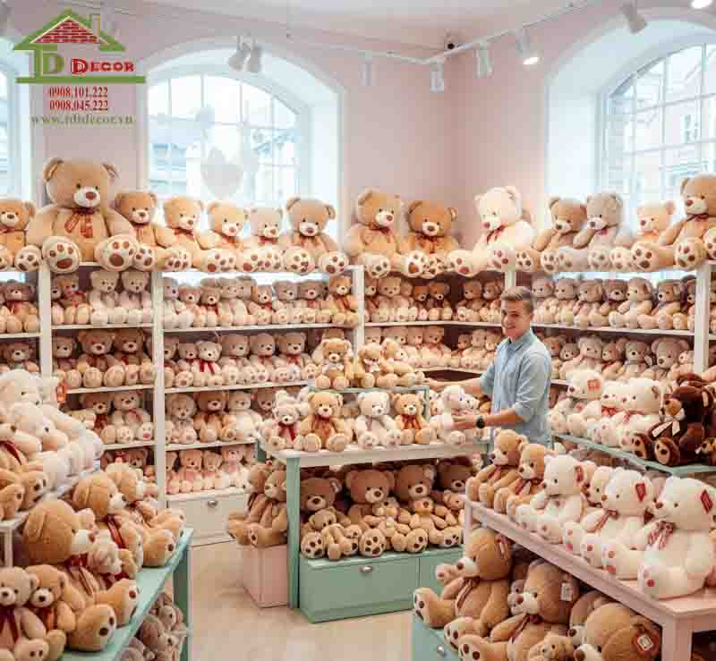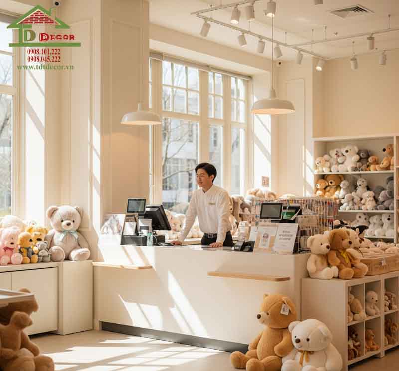 TDT Decor là một trong những đơn vị có nhiều năm kinh nghiệm và được giới chuyên môn đánh giá cao trong lĩnh vực thiết kế shop và thi công shop. Mỗi bản thiết kế TDT Decor cung cấp cho khách hàng không chỉ đơn thuần là một bản vẽ, đó là lời giải hiệu quả cho mọi thử thách khó khăn và khắc phục tối ưu những tồn tại của công trình. Nếu bạn muốn sở hữu mẫu cửa hàng gấu bông cho riêng mình, hãy liên hệ ngay với chúng tôi.