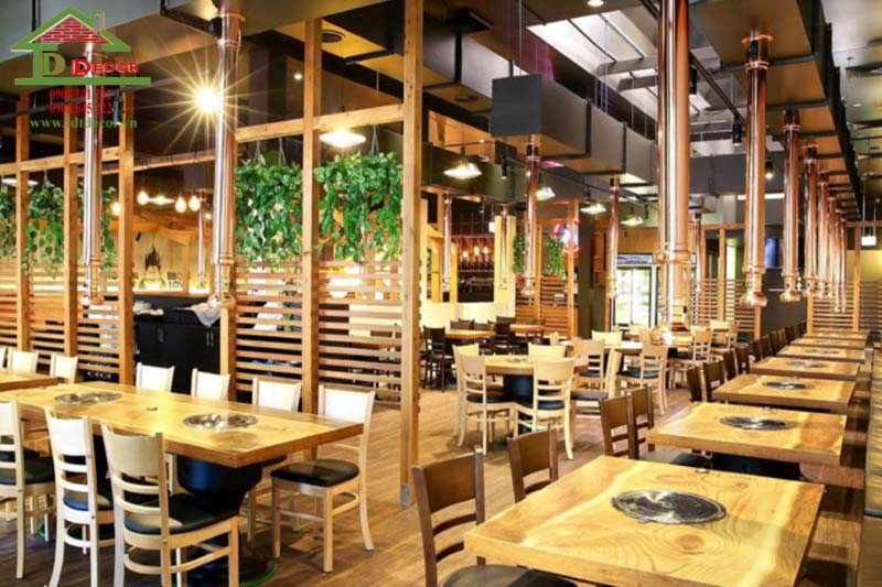 Không ngoại trừ với những mẫu thiết kế nhà hàng Hàn Quốc, nhà hàng Hàn Quốc cũng cần được bố trí trong không gian rộng rãi, thoáng mát. Những chi tiết được thiết kế sao cho nhà hàng luôn đẹp và ấn tượng nhất trong mắt thực khách đến dùng bữa.